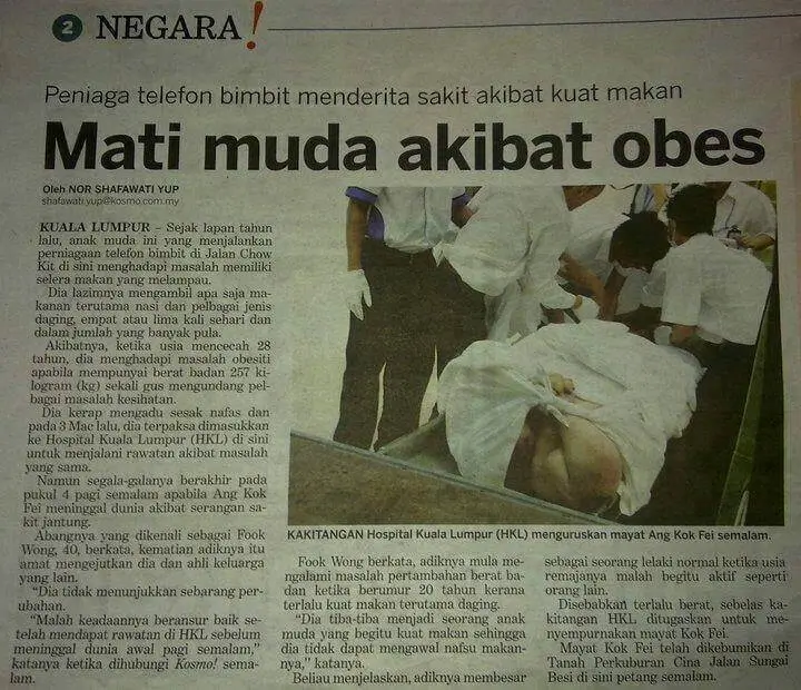 Ramai yang menghidap obesiti, menyangka comel, lucu.. akhirnya mengundang pelbagai penyakit kronik hingga menyebabkan kematian. ORANG MUDA PUN BERISIKO TINGGI JIKA ANDA OBES.