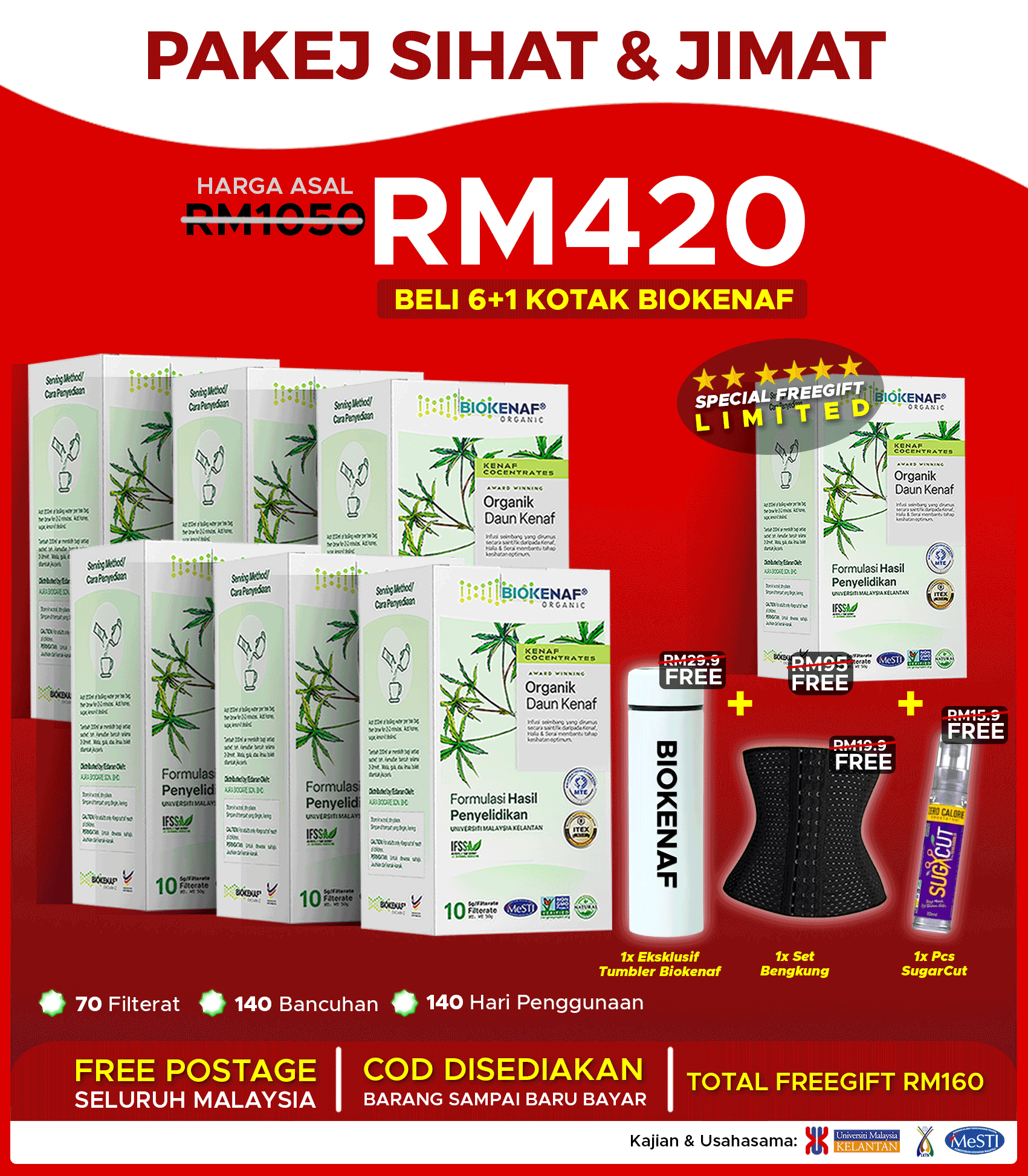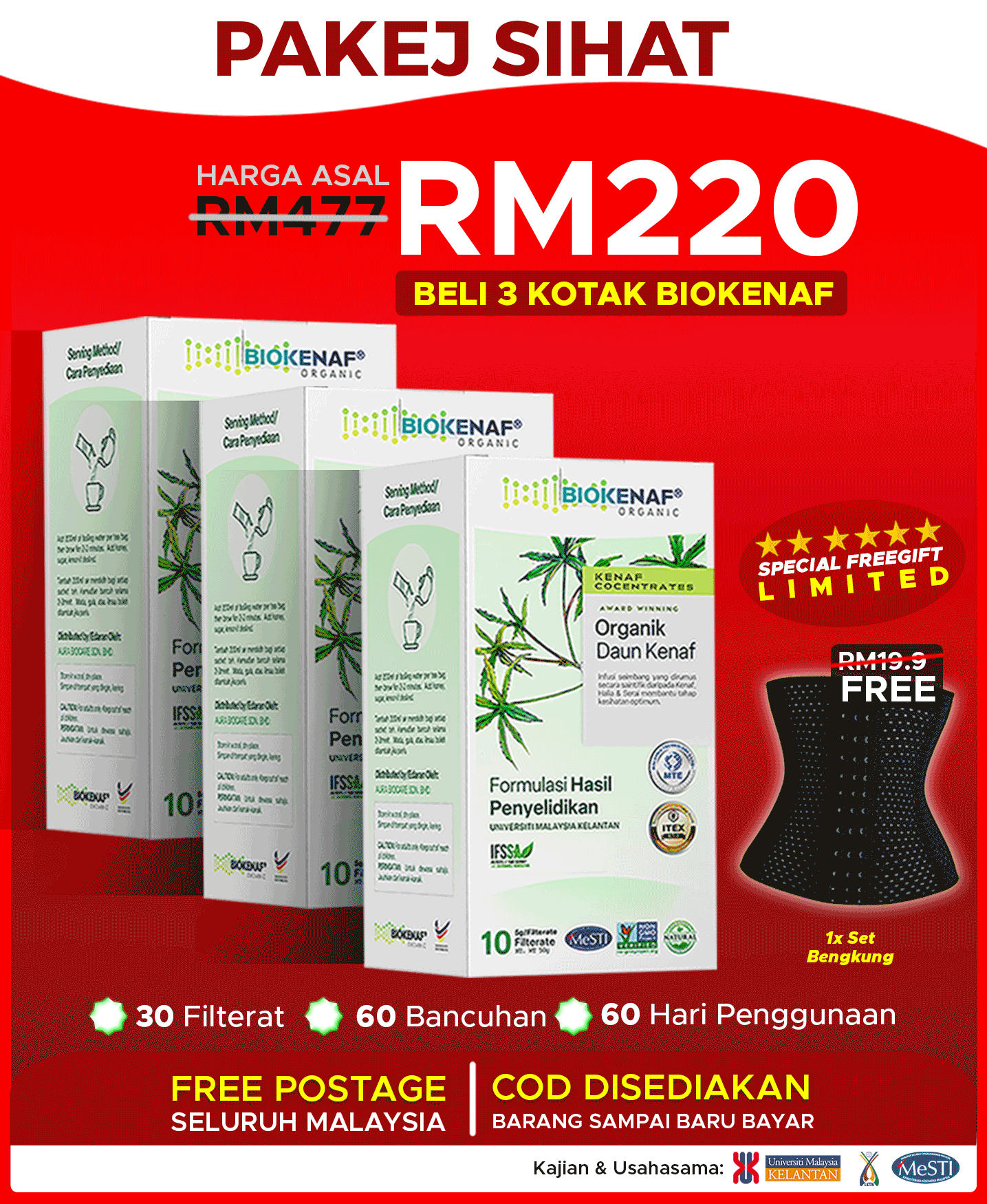 Paling penting, BIOKENAF® dah terbukti berkesan melalui kajian klinikal dan selamat untuk diamalkan.