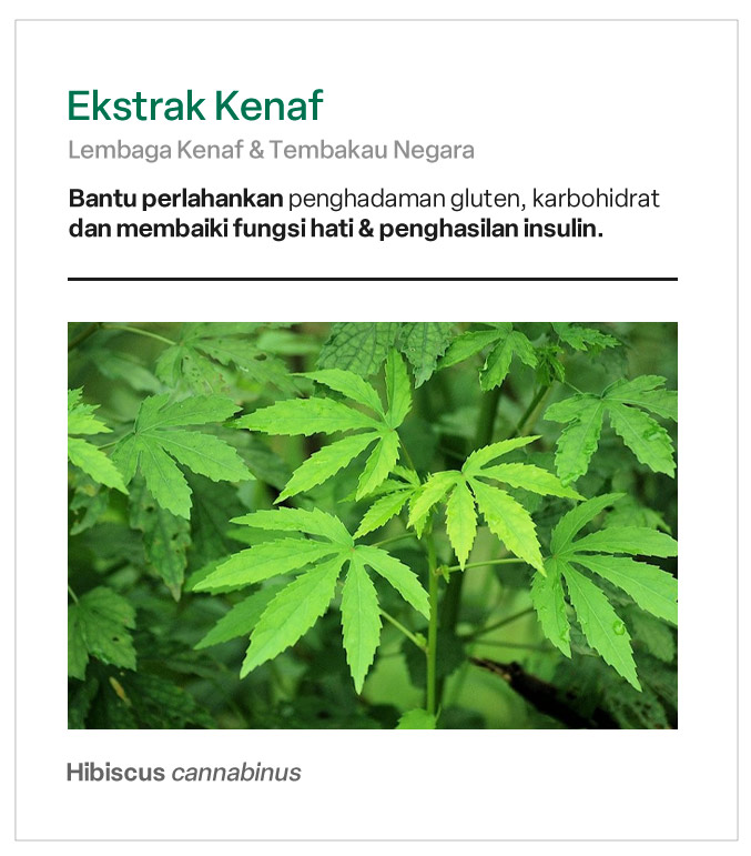 Ekstrak Kenaf dibuktikan oleh kajian dari saintis lain dalam negara terkandung nutrient anti radang sangat tinggi bantu potong rasa sakit dan tidak selesa disebabkan kesan radang berpanjangan dari obesiti & kolesterol tinggi.