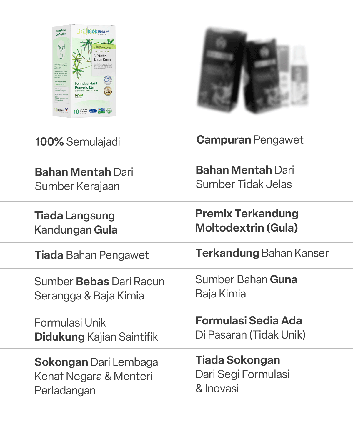 Ini perbezaan BIOKENAF® dan Produk Premix dalam pasaran.